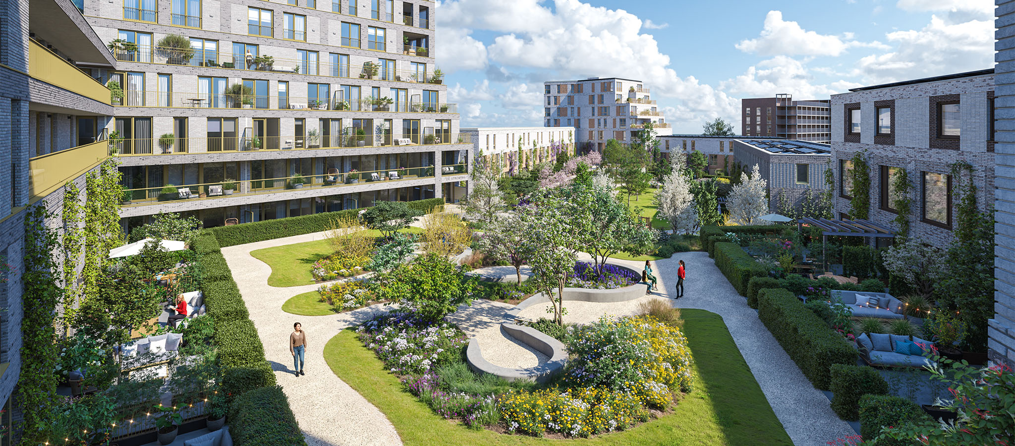 Stel je voor: je stapt je woning uit en wandelt zo de groene binnentuin in, het hart van Zuidhof. Waar kinderen spelen, buren een praatje maken en ook alle ruimte is om rust op te zoeken. Zuidhof, gelegen in De Waalhoven, is een wijk die niet alleen ontworpen is om in te wonen, maar vooral om in te léven. Alles klopt. En dat is geen toeval. Het inrichtingsplan is tot in de puntjes doordacht. Ontdek de highlights!